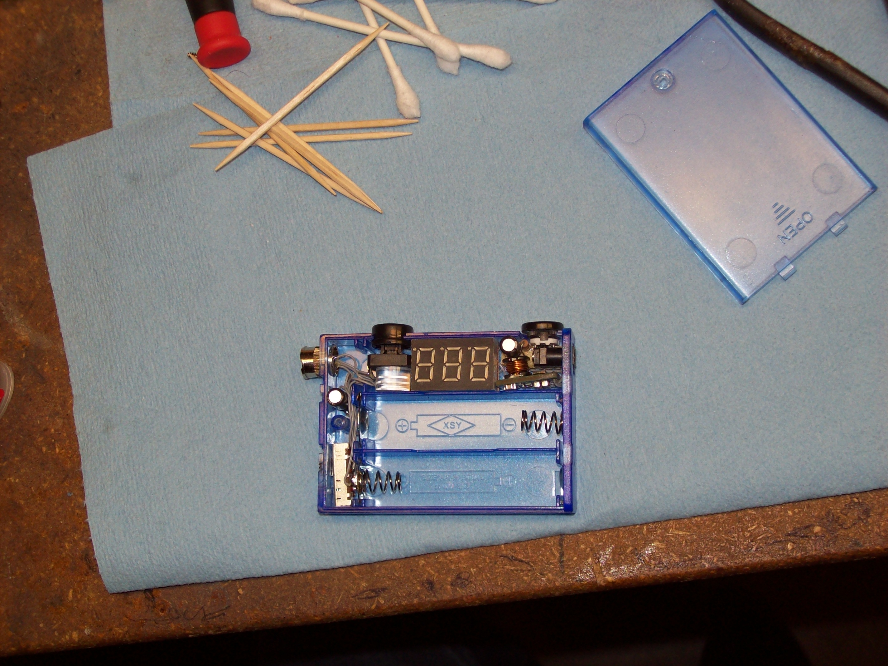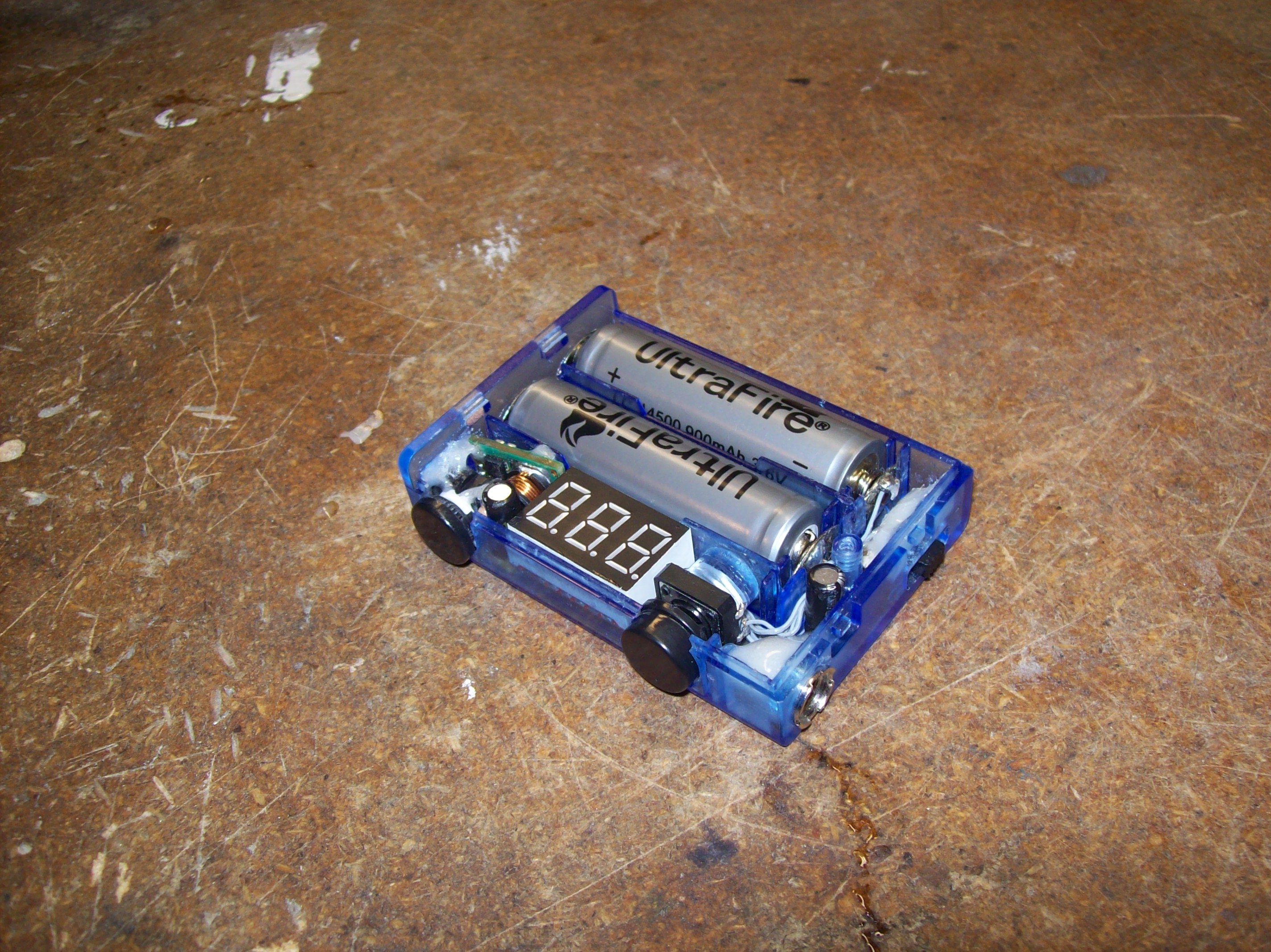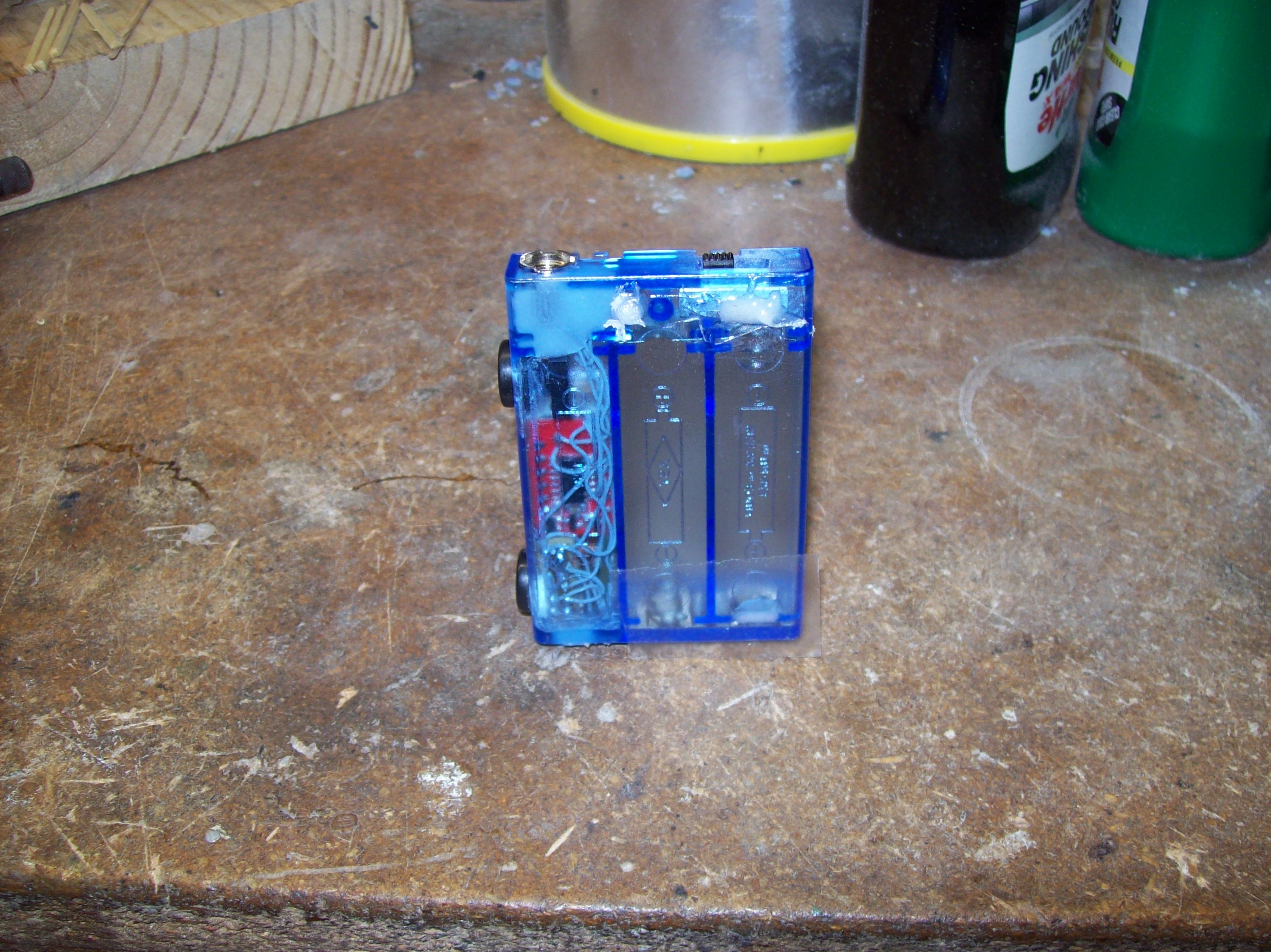 The voltmeter board was cut down a little to fit in the AA size space. It fit surprisingly perfect.