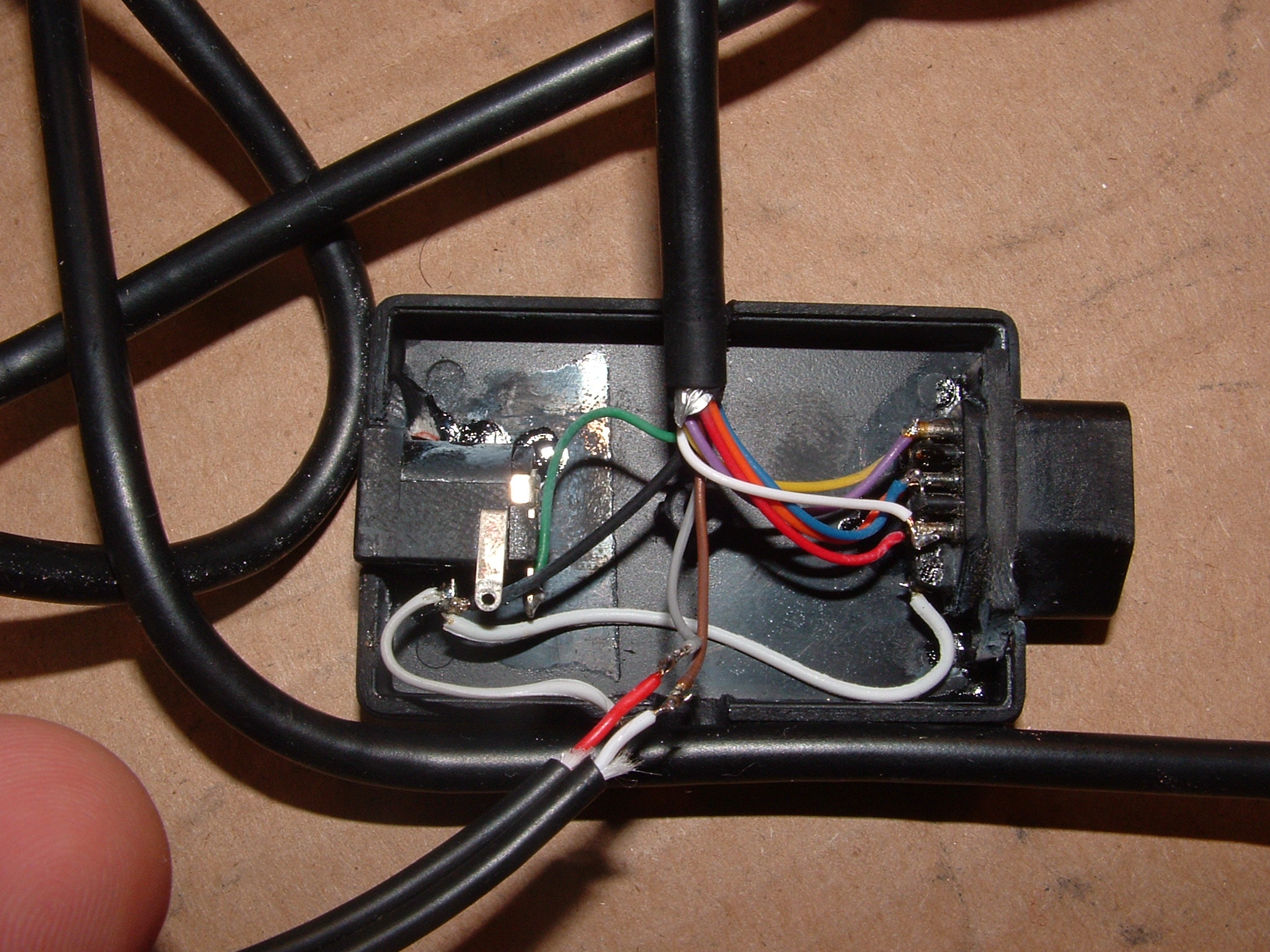 The junction box connections were soldered together. This connected lines from the AV plugs, power, and player 2 port to the NES clone. The wires were then encased in hotglue to keep them from coming loose.