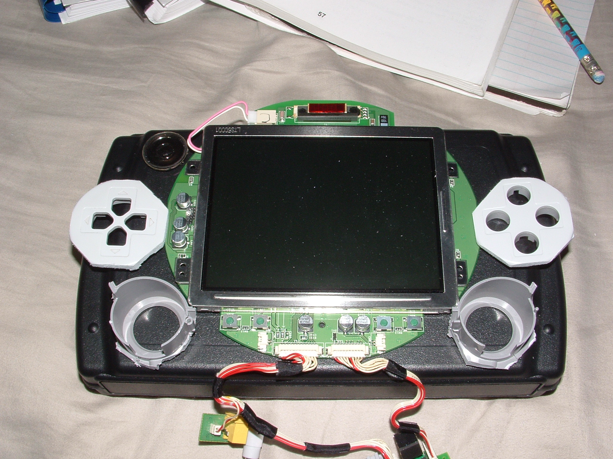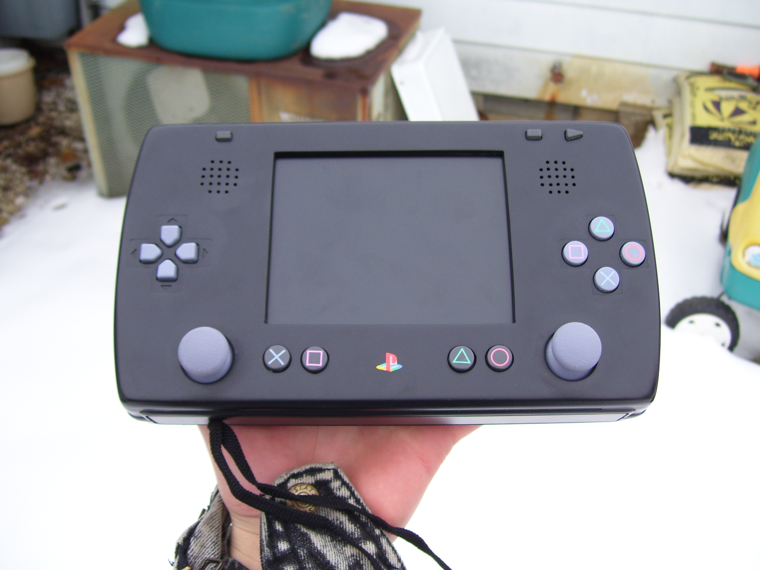 - LED backlight modded 5″ Sony PSone screen for more battery life.