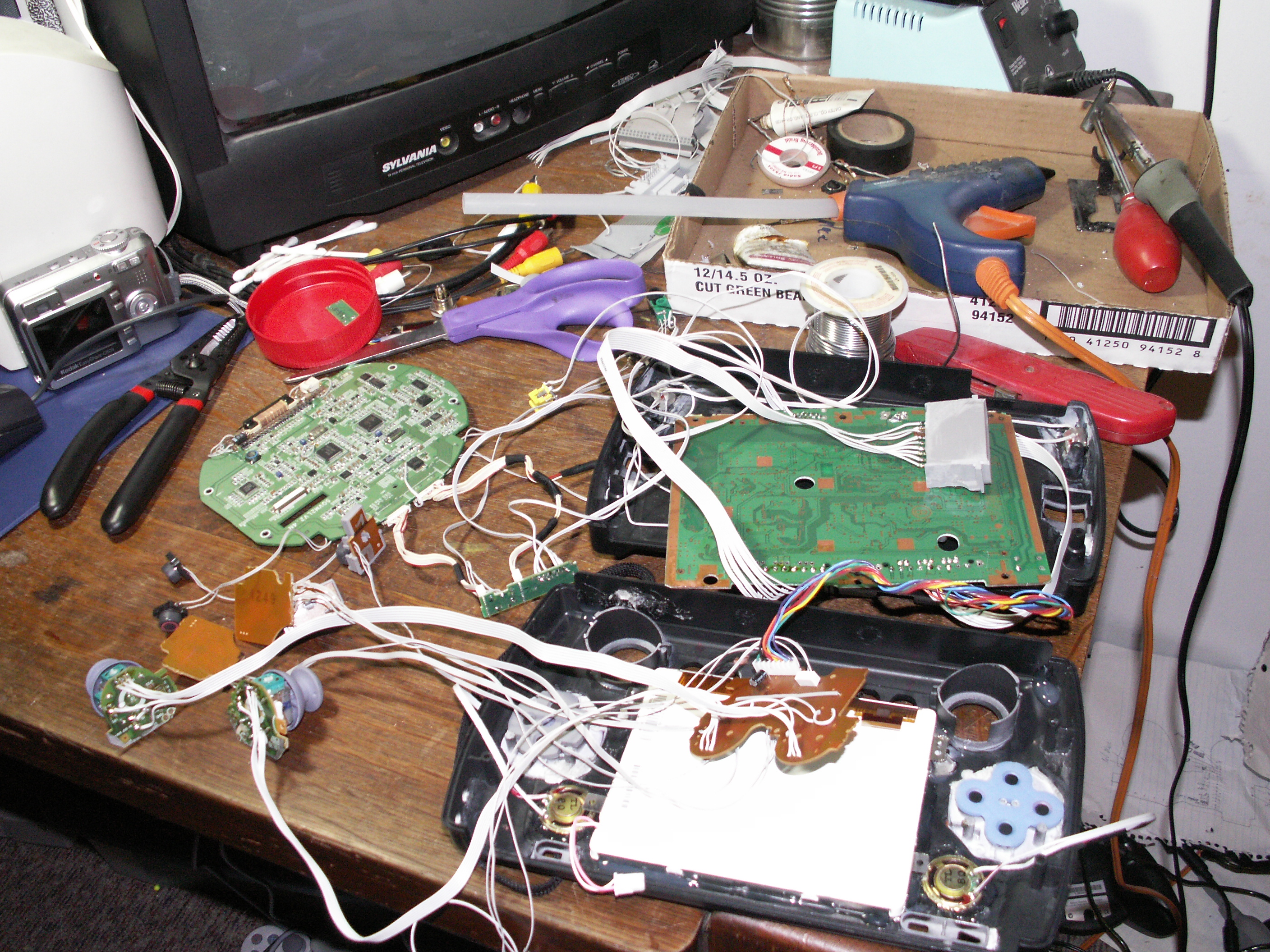 Then I wired the power, video, sound, power switch, CD lid switch, etc. Everything was then superglued/screwed/hotglued in place.