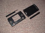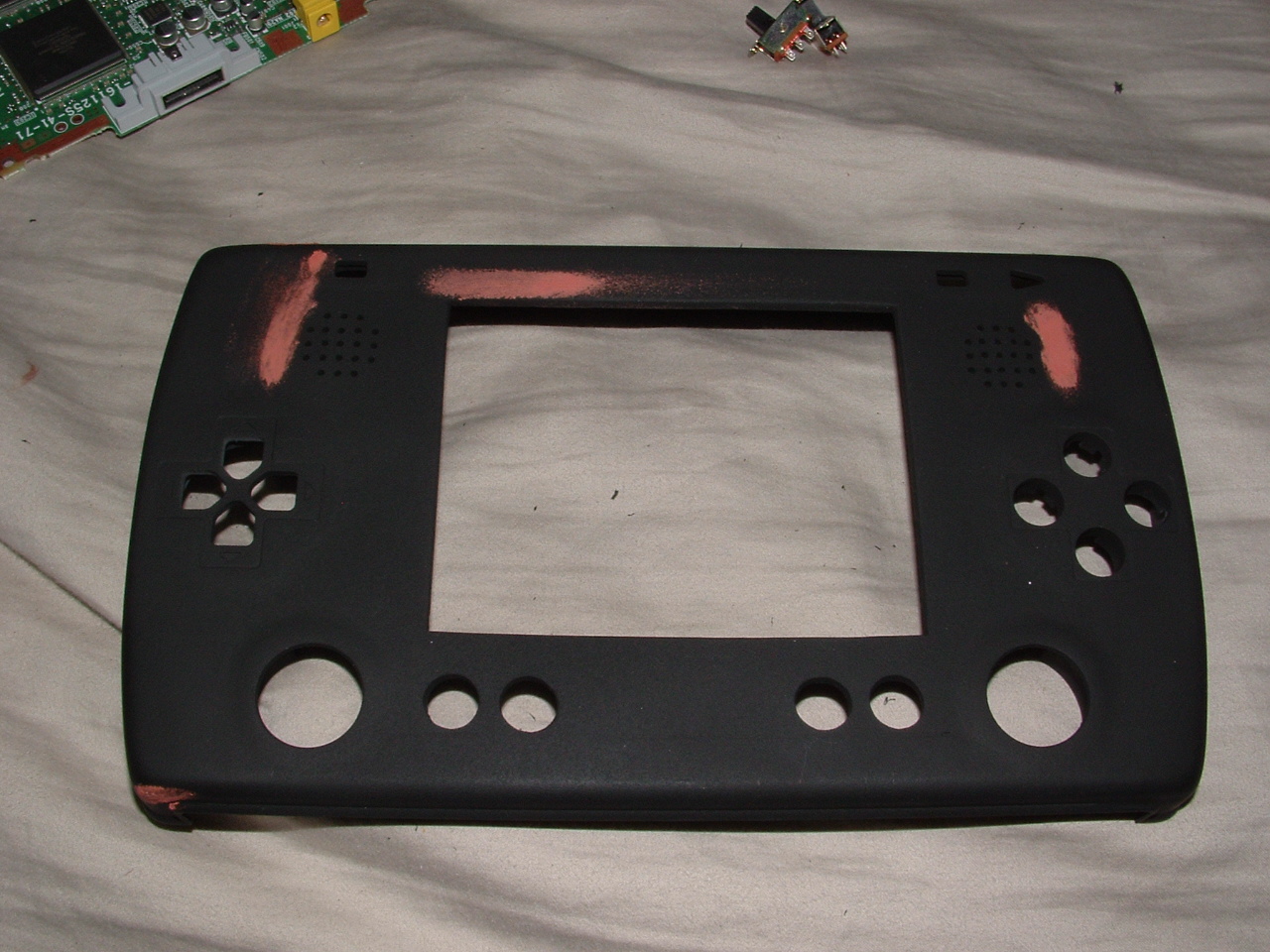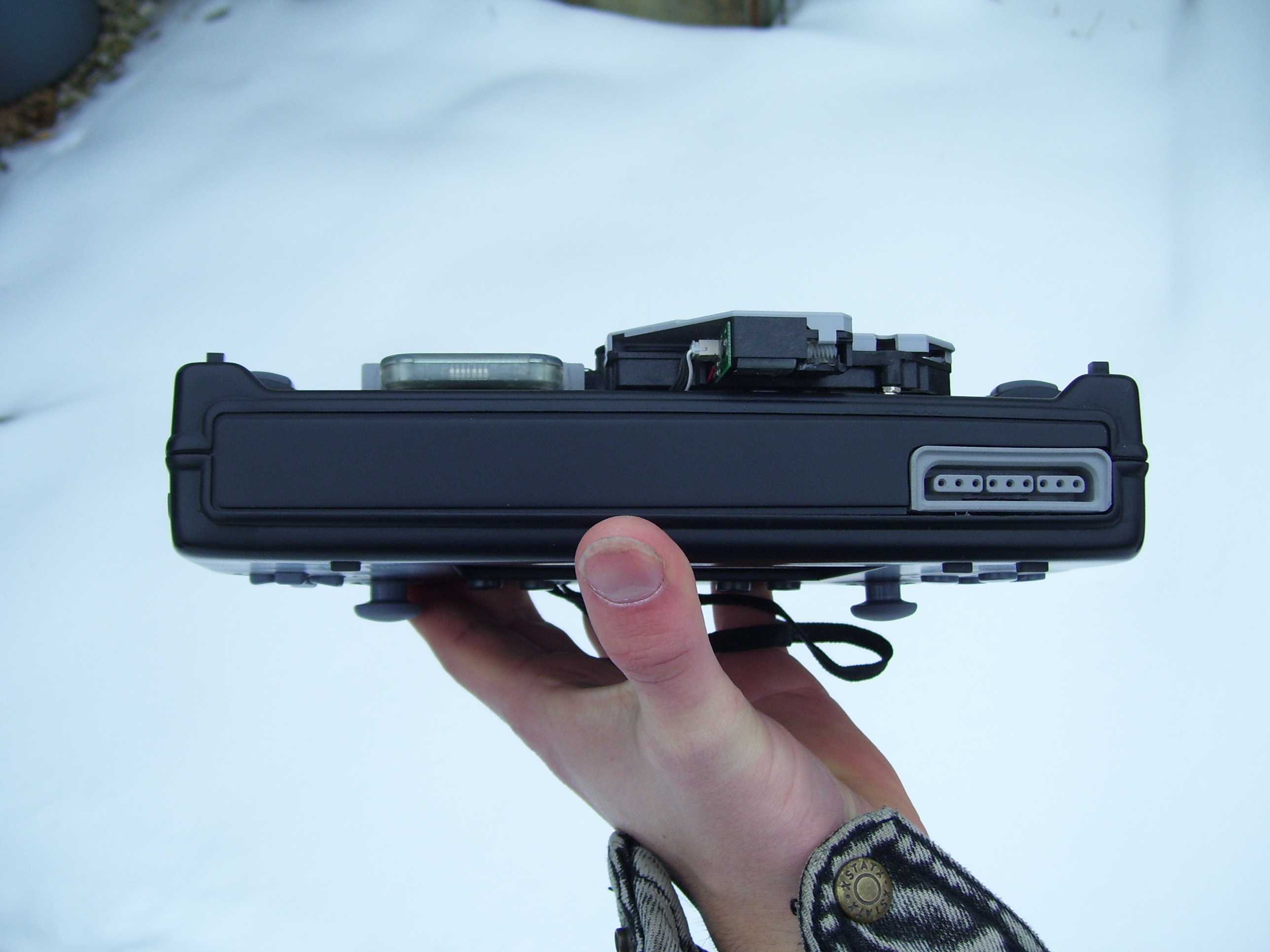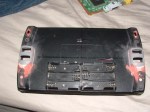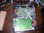 Holes for the power and CD lid switches were rough cut with a dremel, then a utility knife was used to make the square shape. I also cut out areas for the CD power cable, CD ribbon cable, memory card wire, power wires, and CD and battery mounting screws.